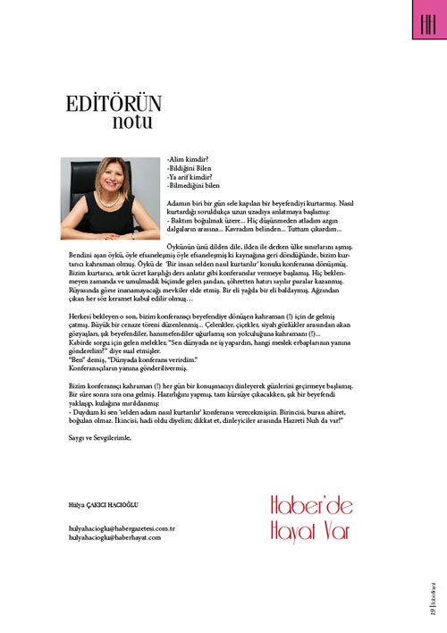 - Duydum ki sen ‘selden adam nasıl kurtarılır’ konferansı verecekmişsin. Birincisi, burası ahiret, boğulan olmaz. İkincisi, hadi oldu diyelim; dikkat et, dinleyiciler arasında Hazreti Nuh da var!”